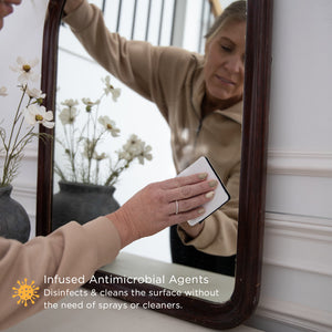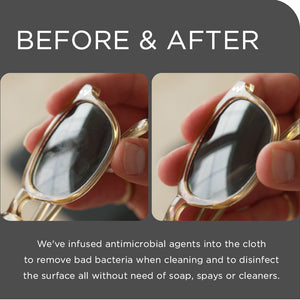 Crafted with a proprietary chamois-polyamide synthetic tri-blend and woven in micro omnidirectional patterns, Jiffys clean safely across all surfaces—from expensive eyeglasses and phone screens to stainless steel appliances and camera lenses. Unlike traditional microfiber cloths or clunky cleaning pens, Jiffys don’t scratch, leave residue, or need additional cleaning products. Plus, they’re infused with antimicrobial agents to not just clean, but disinfect every surface they touch.
