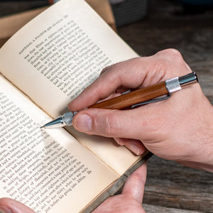 Precision‑machined for balance and durability, the pencil body pairs these extraordinary ancient materials with solid metal hardware for a tool that feels as good as it looks. Crisp, consistent writing comes courtesy of a smooth mechanical click mechanism and refillable .7 mm lead — ready for everyday notes, sketches, journaling, or drafting. Every piece is handcrafted in Chicago and guaranteed for life, making it as resilient as the wood it came from.